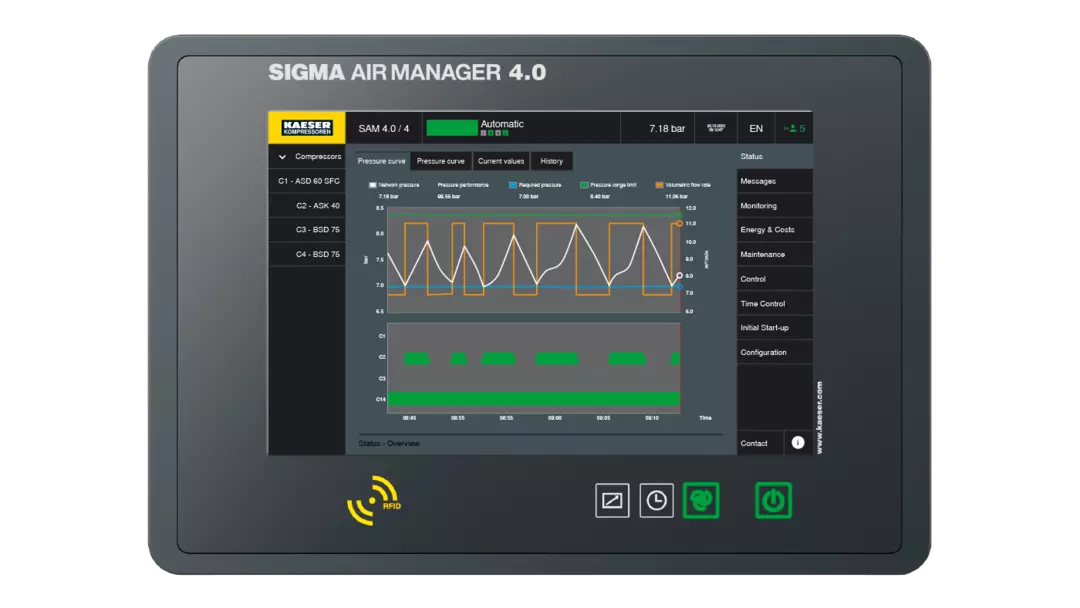 The SIGMA AIR MANAGER 4.0 compressed air management system monitors and controls all components within the compressed air supply system to achieve maximum cost savings.